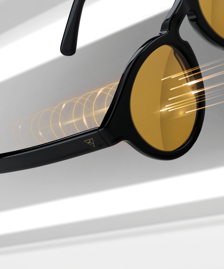 Hyperlight Optics are unique because of the special nanophotonic materials used in their production, which transform ordinary, diffused light into a new light that is considerably more compatible with our biomolecules. It means that a photon interacts with Fullerene C60 to form an exciton. The photon and the exciton couple together and eventually combine, to form a polariton. The energy particles of previous photons in the polariton are ordered following the laws of the electromagnetism of biomolecules, both in our eyes and in our brain. For this reason, they have an impact on the entire neuroendocrine system. This contributes to better body regulation, thus placing Hyperlight Optics as a unique, leading brand in the sunglasses and blue-light blockers market.